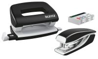 Zszywacz + dziurkacz metalowy Leitz Mini WOW, czarny, 10 lat gwarancji, 10 kartek 55612095