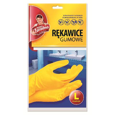 AZ Rękawice gumowe L • chronią dłonie przed zabrudzeniem i środkami chemicznymi podczas wykonywania czynności domowych i ogrodniczych • bardzo miękkie i przyjemne w dotyku. • w środku bawełniana wyściółka zapobiega poceniu się dłoni • bardzo wytrzymałe